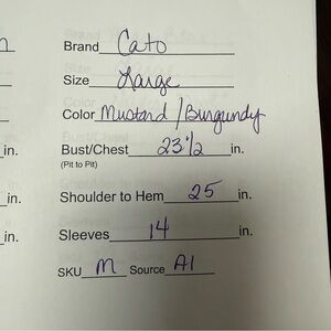 Measurements: Bust (Pit to Pit): 23.5 in, Length: 25 in, Sleeves: 14 in