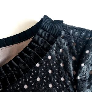 Ivy & Blu Women's Black Cut Out Vegan Leather Wiggle Shift Cap Sleeve Dress 4
