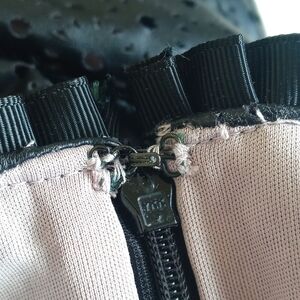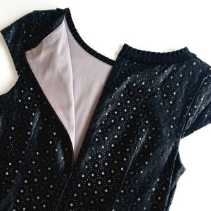 Note: Delicate area on sleeve that has starting to show very faint signs of wear from storage but has never been worn and is not noticeable nor takes away the appearance nor quality from the dress. Wanting to find this treasure a home. This is a gorgeous dress and a unique design!