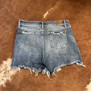 Stylish distressed jean shorts. Perfect for everyday wear. Comfortable and chic. Mid rise and has stretch. Worn once.