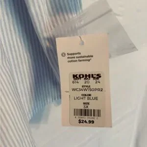Classic button-front shirt with point collar. Long sleeves with rolled cuff look. Lightweight striped fabric for easy wear. Labeled size 3X—can also be worn oversized for a relaxed, beachy look on smaller sizes. :)