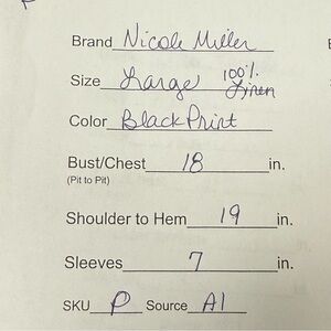 Measurements: Bust (Pit to Pit): 18 in, Length: 19 in, Sleeves: 7 in