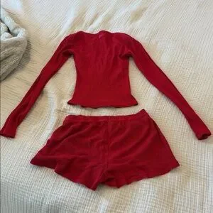 Skims Waffle Henley Short and Long Sleeve Pajama Set Sz s in brick