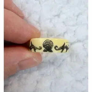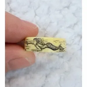(VTG) Cream/Black Scrimshaw-Style Mermaid/Seashell Nautical-Themed Carved Ring