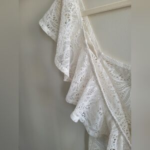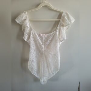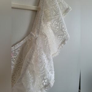 La Vie En Rose - size L/XL. Unworn. White lace with flowy scalloped sleeves
