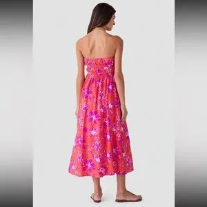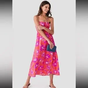 strapless dress summer dress floral midi dress tropical dress vacation dress resort wear beach dress orange dress pink floral dress smocked dress boho dress flowy midi women’s summer outfit By Together dress Maui dress NWT dress