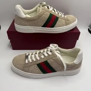 NWT Gucci Beige Ace Sneakers with Red and Green Accents size 39 fit 8.5-9US