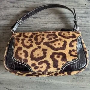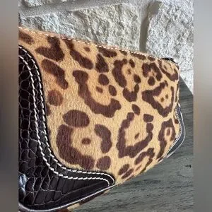Vintage Valentino Leopard Print Pony Hair Shoulder Bag
