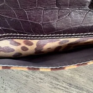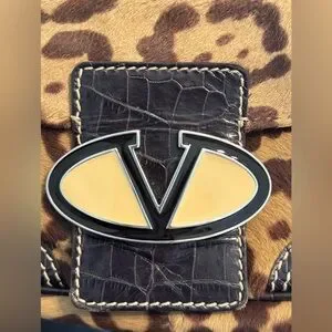 Vintage Valentino Garavani shoulder bag in leopard-print pony hair calfskin with crocodile-embossed leather trim.