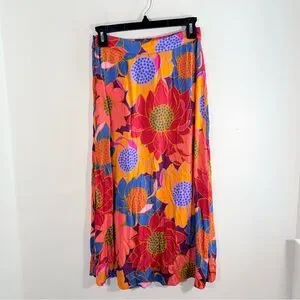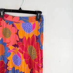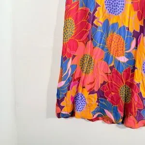 Farm Rio Vibrant Multicolor Sunflower Floral Print Midi Skirt XS