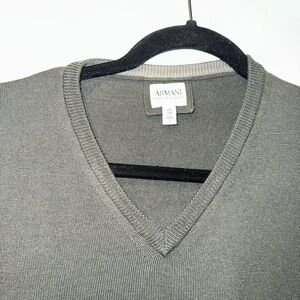 Armani Collezioni V-Neck Sweater Mens S olive green Minimalist Designer Knit