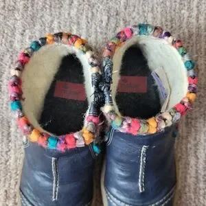 WELL LOVED but with lots of life left. Cracking on upper and wear on treads from normal wear.