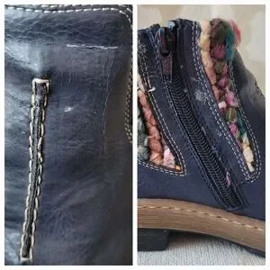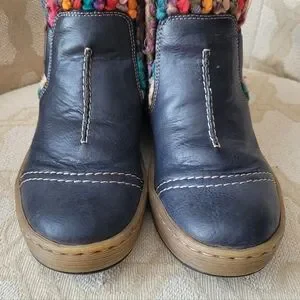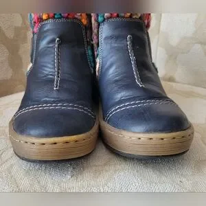 RIEKER FELICITAS MID BOOTS BOHO KNIT CUFF ZIPPER LINED NAVY EU 37 6 6.5