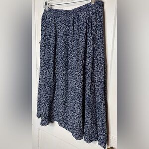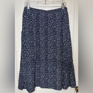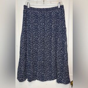 Garnet Hill Navy Blue Floral Midi Skirt Pull On Lined Crepe Pockets Sz L