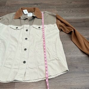 NWT Cotton On Cream and Brown Oversized Lightweight Jean Jacket XS/SMALL