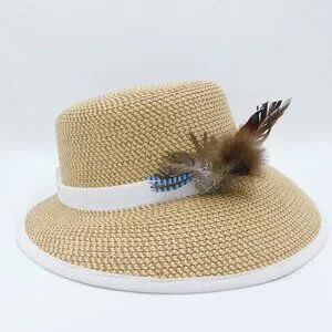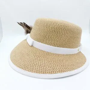 Eric Javits Squishee Raffia Ribbon Cap | White Brim | Customized | EUC