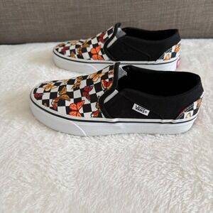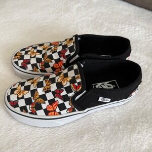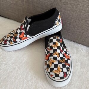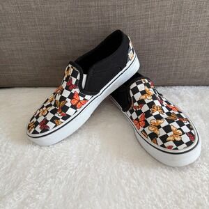 Vans Slip On Checkerboard Butterfly Print Sneakers Womens 6 Casual Shoes
