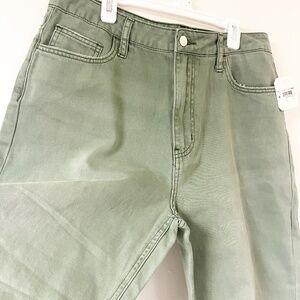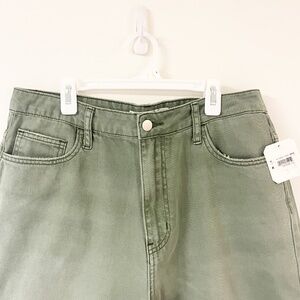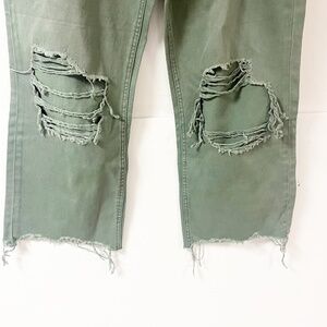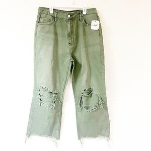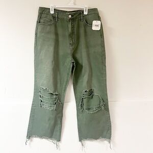 Altar'd State Olive Green Distressed Cropped Wide-Leg Jeans