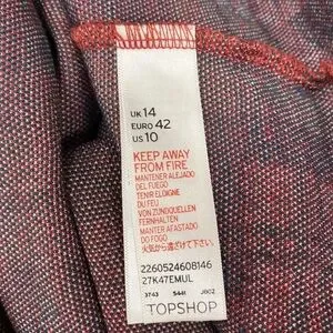 Nice elastic waist skirt by Topshop in size 10. Length measures 25 inches. In good preowned condition. Please see pictures and contact me with questions. Thank you for looking.
