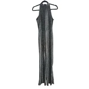 Sparkle Halter Neck Jumpsuit - Silver Metallic Shimmer