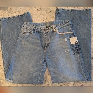 LRL Ralph Lauren Patchwork Straight Wide Leg Jeans Size 10 Vintage Distressed