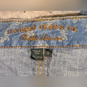 Unique LRL Lauren Jeans Co. by Ralph Lauren patchwork jeans with a vintage-inspired look—perfect for Y2K and streetwear styling.