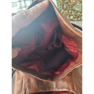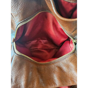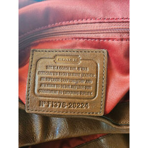 Coach Madison Phoebe shoulder bag. Style 26224. It is crafted rich, warm brown pebbled leather and features a slouchy, hobo style design with gold toned hardware. Beautiful satin lines the inside of this bag. Three pockets, zip closure in the center, slip pockets on one side and zip pocket on the other and a snap closure.