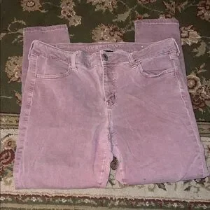 Soft lavender jeans with a flattering straight-leg fit. Comfortable stretch fabric and classic five-pocket styling. Versatile lavender color that pairs well with neutrals and pastels.