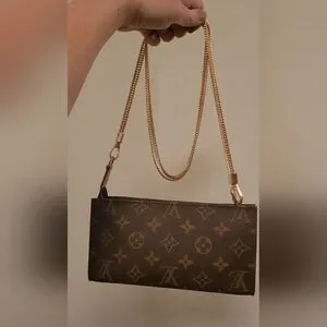 Chic Louis Vuitton pouch with signature monogram. Features a gold chain accent.