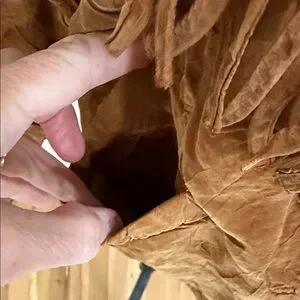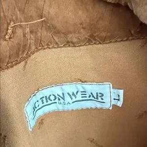 Vintage 90s Action Wear Brown Faux Suede Fringe Jacket Made in USA
