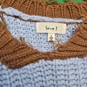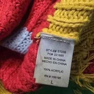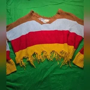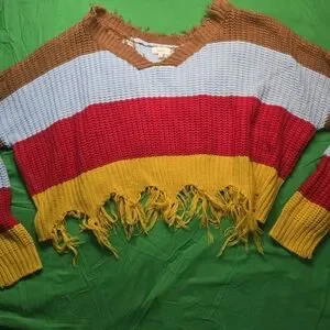 Knit Cropped Red Yellow Brown Blue Fringe Hem Sweater Size Large