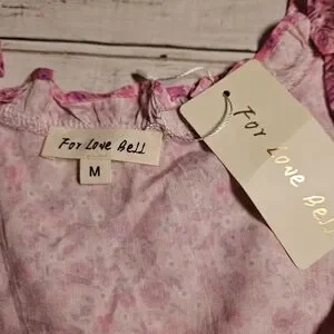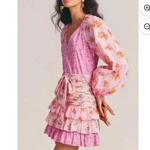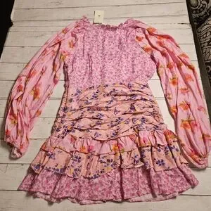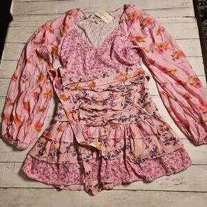For Love Bell Floral Ruffle Mini Dress Medium NWT Pink Boho Layered V-Neck