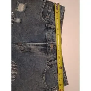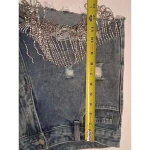 Windsor Rhinestone Fringe Denim Shorts High Waist Distressed Festival Bling M