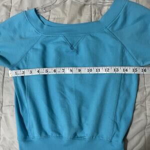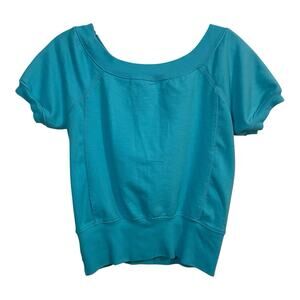Derek Heart Y2K Size Medium Women Short Sleeve T Shirt Blue Cotton Blend Casual
