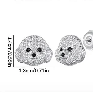 Creative Personalized Shining Rhinestone Cute Maltese Pet Dog Stud Earrings For