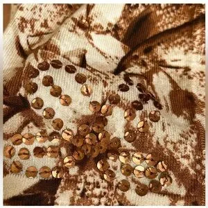 Chico’s 2 pc silk blend Frenchie tank & cardigan with bronze sequins, Chicos size 0 or US size small. Measures approx 17.5” from armpit to armpit & 25” long.