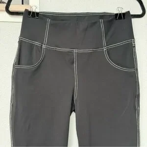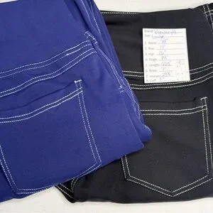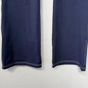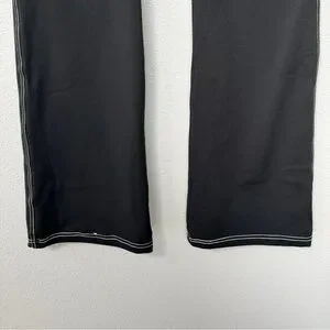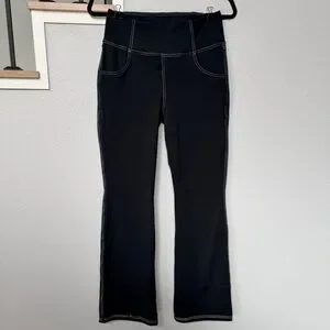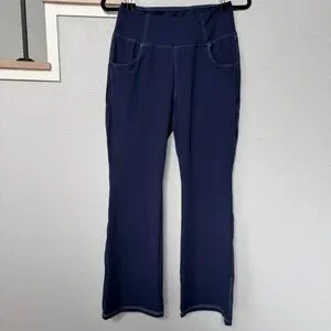 Design: These feature a slight flare (bell bottom) and distinctive white contrast topstitching that gives them a stylish, denim-like appearance.