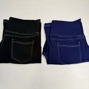 Two Pairs of Women's Flare Yoga/Jeans with Contrast White Stitching Blue/Black