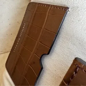 brown croc-embossed leather tote with a structured silhouette. Smooth polished handles for comfortable carry. Timeless, versatile design that pairs well with day or evening looks.
