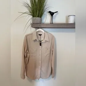 A versatile golden beige button-up shirt with a classic collar and chest pockets. Soft, lightweight fabric for comfortable all-day wear. Neutral golden beige color pairs easily with any outfit.