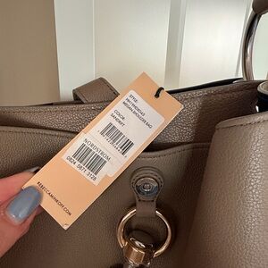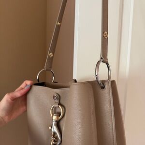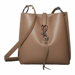 100% genuine leather Rebecca Minkoff Megan Shoulder Bag. Sandrift color. Adjustable strap. 2 interior compartments. Magnetic clasp. One zipper pocket.