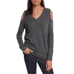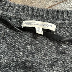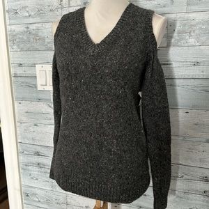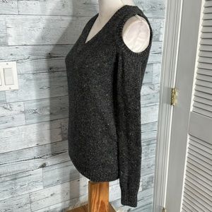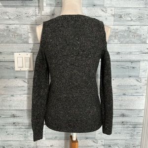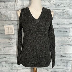 REBECCA MINKOFF WOOL ALPACA COLD SHOULDER SWEATER, size XS, Marled gray, wool v-neck sweater, rib knit trim, no pilling, excellent preowned condition.
