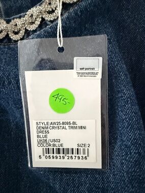 Self-Portrait Indigo Crystal Trim Mini Dress NWT Size 2