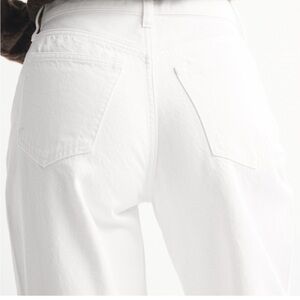 Our classic wide leg fit in a white wash with a clean hem. Features a high rise that is relaxed at the waist and hips and widens into a tull-length leg shape. For comparison, it's wider than our High Rise Loose Jean.