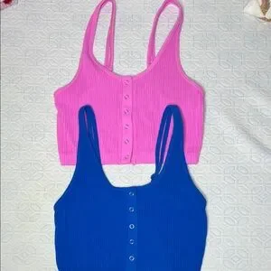 Aerie Ribbed Snap-Front Crop Tank Top - Pink and Blue