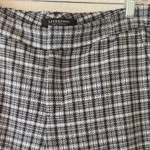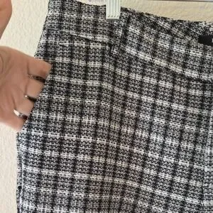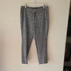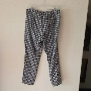 Tailored slim silhouette with a classic plaid pattern. Mid-rise waist with a clean front. Soft woven fabric for daily wear. Neutral palette pairs easily with layers.