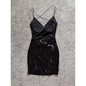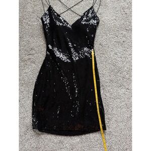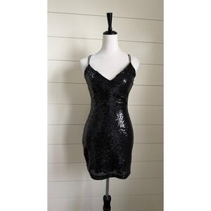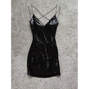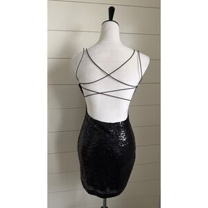 B Darlin Black Sequin Mini Dress Crisscross Back Size M