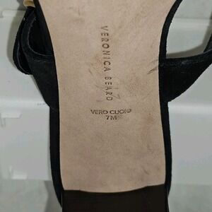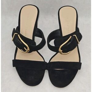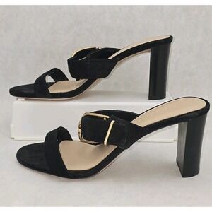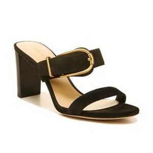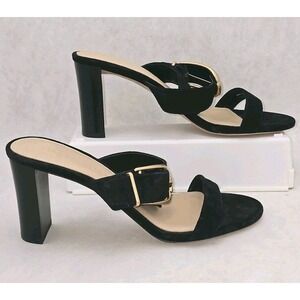 NWOB Veronica Beard Griddley Black Suede Buckle Block Heel Sandals Size 7