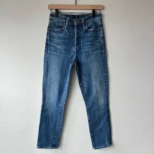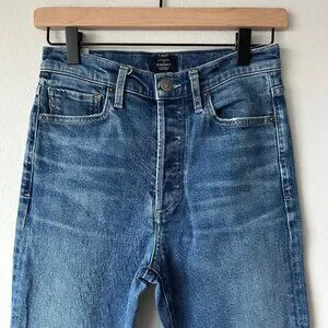 Citizens of Humanity Raw Hem Straight Jeans Womens Sz 25 Medium Wash Ankle Slit