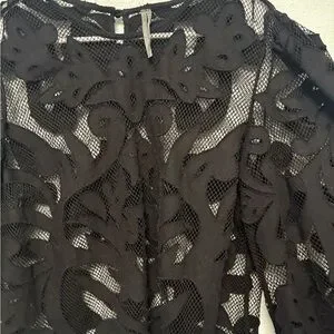 Anthropologie Black Lace Appliqué Sheer Blouse